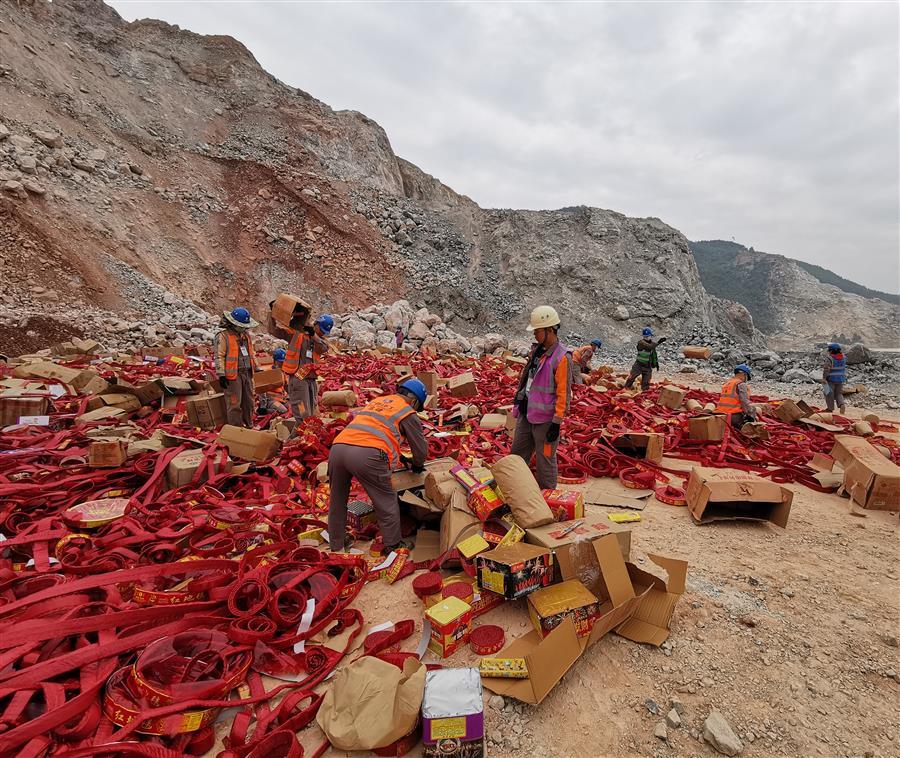 12月9日,第七分公司爆破工程公司受柳州市公安局治安警察支隊(duì)委托,對(duì)一批非法銷售、儲(chǔ)存的煙花爆竹進(jìn)行集中銷毀。