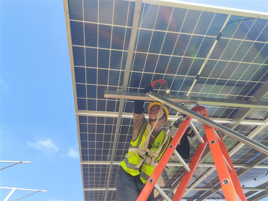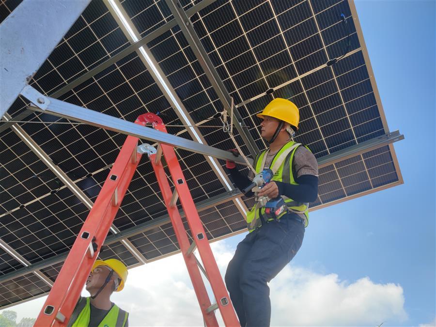 天氣炎熱,項目部及時調(diào)整施工方案,精心組織,科學調(diào)度,確保大家的身體健康和工程建設進度兩不誤。截至目前,該項目已完成樁基澆筑工作的30.13%,支架和光伏板安裝工作的18%。