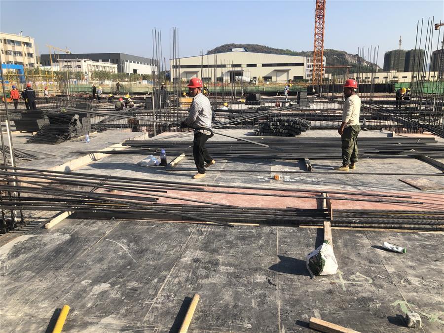 該項目是柳州市重點項目,總建筑面積為8.7萬平方米。目前靜壓樁施工已全部完成;1號樓E區(qū)頂板完成;H區(qū)底板完成;F區(qū)與G區(qū)底板防水保護(hù)層完成;2號樓A區(qū)二層模板安裝完成,D區(qū)負(fù)一層滿堂架搭設(shè)完成。