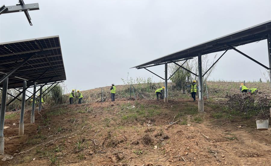 項目規(guī)劃總占地面積1509.9畝,建設(shè)規(guī)模為50MW,該項目的建成將有效助力當(dāng)?shù)禺a(chǎn)業(yè)結(jié)構(gòu)優(yōu)化、節(jié)能減排,促進(jìn)綠色可持續(xù)發(fā)展。項目已實現(xiàn)節(jié)點并網(wǎng),現(xiàn)階段主要圍繞電纜敷設(shè)、溝槽開挖、接地網(wǎng)敷設(shè)、圍欄安裝開展工作。當(dāng)前,項目支架安裝完成66.32%,組件安裝完成66.32%,累計完成產(chǎn)值2270萬元。