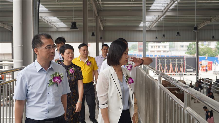 活動現(xiàn)場,熱鬧非凡,大家參觀了農(nóng)特項目園區(qū)及桂中牛行,并對園區(qū)今后的發(fā)展提出了意見和建議。桂中牛行作為農(nóng)特項目園區(qū)內(nèi)的首個主力商家,主營活牛羊交易,副營馬、驢、騾子等草食動物交易。試業(yè)當天,牛群“哞哞”聲此起彼伏,一頭頭體格健壯的牛兒一字排開,人們?nèi)宄扇旱貒墼谝黄穑屑毺暨x著心儀的牛兒。一旁的牛崽交易市場內(nèi),買家更是爭相搶購體態(tài)良好的牛崽,市場交易紅火。