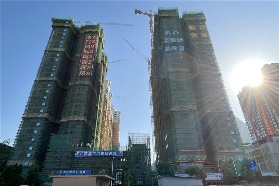 河池·澳門國際城四期工程總建筑面積13.76萬平方米,由4#樓5#樓、地庫以及配套設(shè)施工程和1#樓2#樓3#樓工程兩大部分組成。該項目按照既定的節(jié)點全面鋪開施工,既抓嚴(yán)抓細(xì)抓好關(guān)鍵環(huán)節(jié)施工管理,又積極主動推進(jìn)項目創(chuàng)優(yōu)工作,確保施工生產(chǎn)與項目創(chuàng)優(yōu)兩不誤。據(jù)了解,4#樓5#樓外架拆除均至15層;地下室分部工程水電消防安裝已接近收尾。1#樓磚砌體完成至22層,2#樓磚砌體完成至27層,3#樓磚砌體已完成、二次結(jié)構(gòu)施工至24層。2023年,本項目先后獲得河池市建筑施工安全文明工地、廣西建設(shè)工程安全文明標(biāo)準(zhǔn)化工地等榮譽。