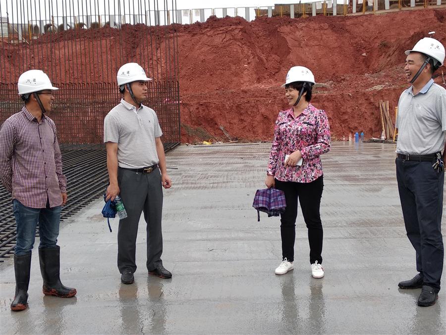 韋桂華(右二)、周善學(xué)(左二)到項目調(diào)研指導(dǎo)工作