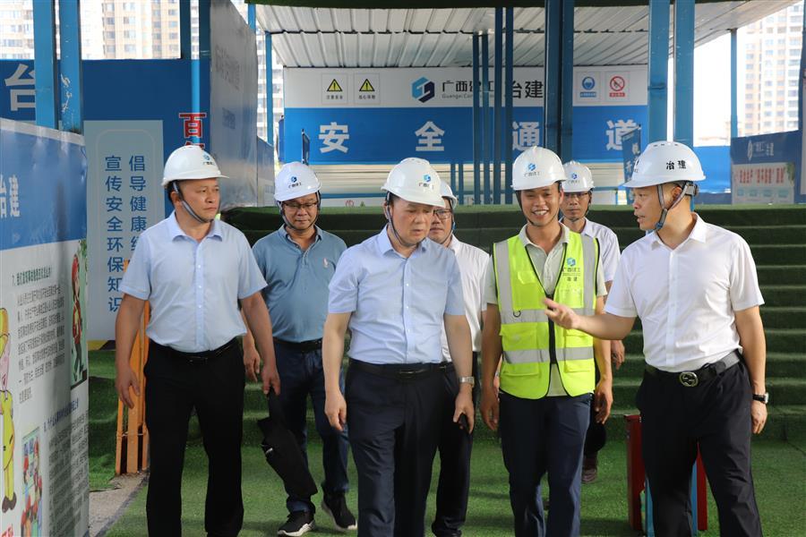 6月30日,廣西建工集團有限責任公司紀委書記余仲遠帶隊到廣西建工集團冶金建設有限公司桂鴻分公司承建的北投時代(二期)項目開展集團公司2023年上半年質量安全綜合大檢查,冶建公司副總經理阮仁勝參加。