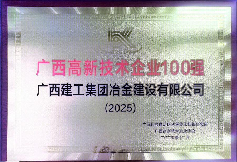 近日,廣西科技情報研究所聯(lián)合廣西高新技術企業(yè)協(xié)會正式發(fā)布2025年度廣西高新技術企業(yè)百強系列榜單。冶建公司憑借突出的創(chuàng)新實力、穩(wěn)健的發(fā)展質效成功躋身榜單,充分彰顯了公司技術創(chuàng)新能力、核心競爭力與行業(yè)影響力。
