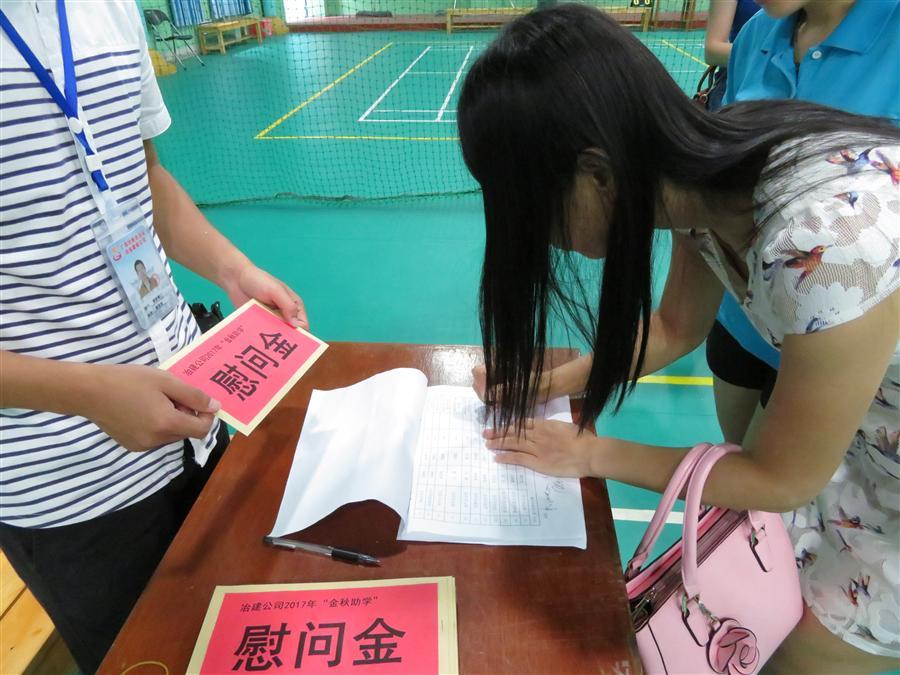 “恭喜恭喜,祝您的孩子學(xué)業(yè)有成!”9月8日下午,我司工會(huì)在公司體育館舉行“金秋助學(xué)”慰問(wèn)金發(fā)放儀式。