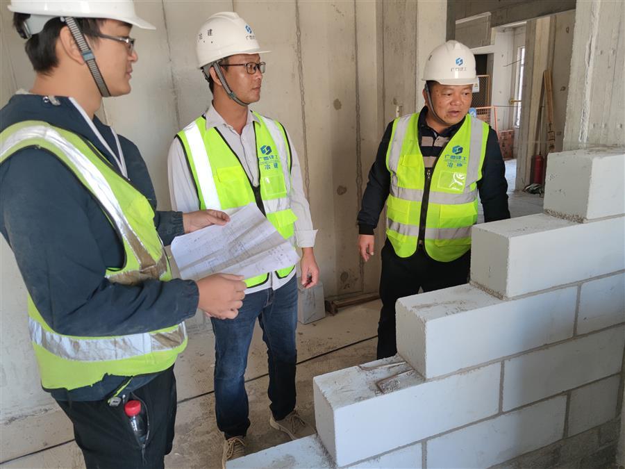 黃開(kāi)造檢查砌體施工質(zhì)量